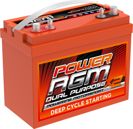 POWER AGM Dual Purpose Batteries absorbed glass mat (AGM) sealed, maintenance-free batteries feature a number of design elements to provide optimum performance. Robust plates extend the life cycle of POWER AGM Dual Purpose Batteries. A separator of glass fibers serves to isolate the positive and negative plates while acting as a pad to absorb the electrolyte. The separator is maintained under compression between plates to assure contact with plate surfaces. A computer-generated grid design is optimized for high-power density. Low calcium grid alloy reduces gas emissions and a flame arresting; one-way pressure relief vent prevents buildup of excessive pressure. Power AGM Dual Purpose Batteries are low temperature tolerant, shock and vibration resistant and have a low internal resistance for higher discharge current and higher charging efficiency. Designed with advanced battery technology, POWER AGM Dual Purpose Batteries deliver dependable power with long battery life.